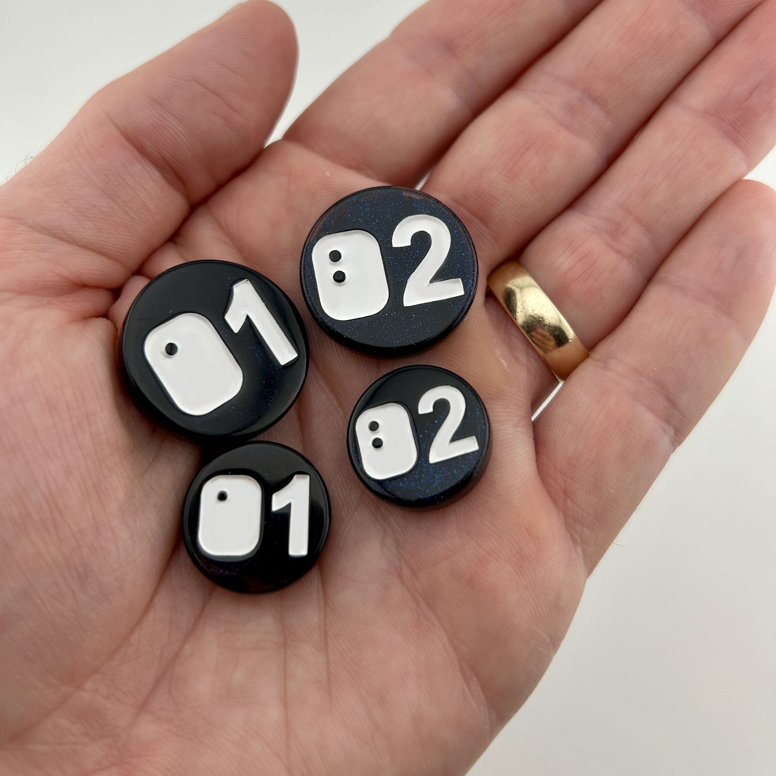 D2 Counters | 10-piece Set in Dark Glitter Resin and White Ink