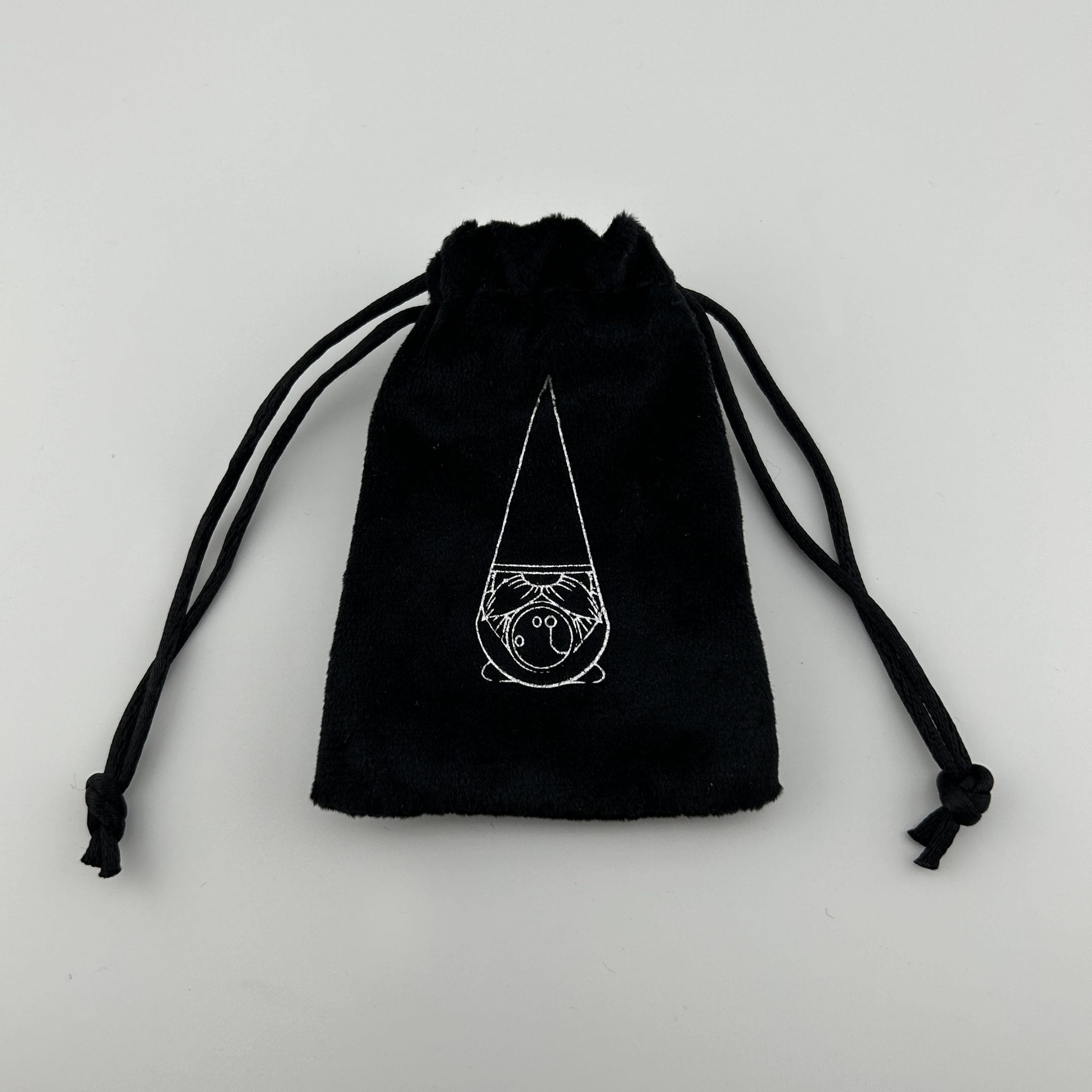 Packaging: Custom Black Felt Cinch Bag with Silver Foil Gonk Stamp!